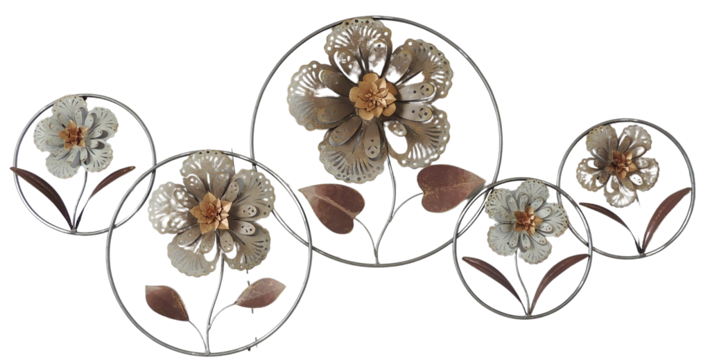 Metalen wanddecoratie “Sierlijke bladeren in cirkel”