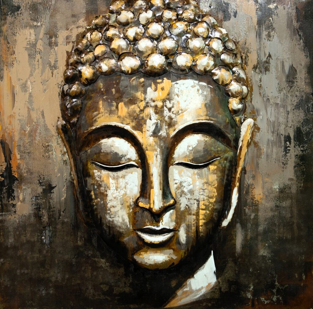 Metalen schilderij “Buddha metaal”