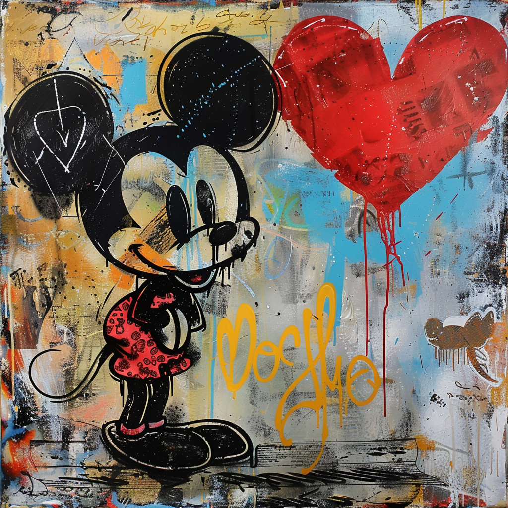 Schilderij mickey mouse met hartje streetart graffiti stijlBanksy,Olieverf en acryl,Schilderijen€149,00 - €499,00Prijsklasse: €149,00 tot €499,00
