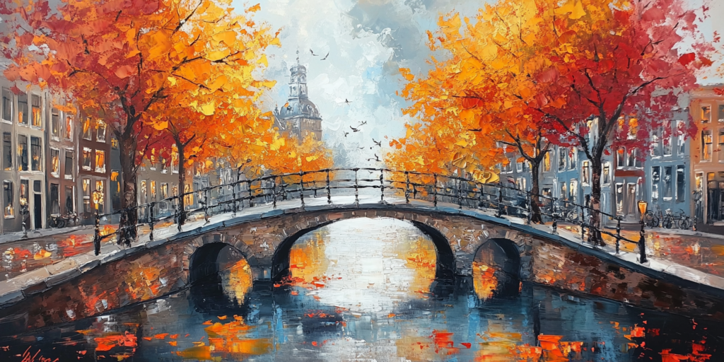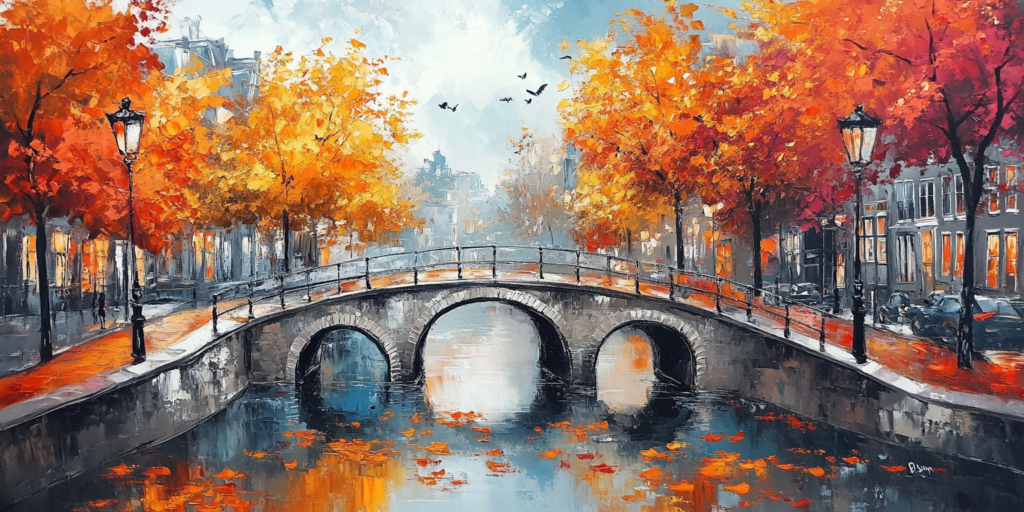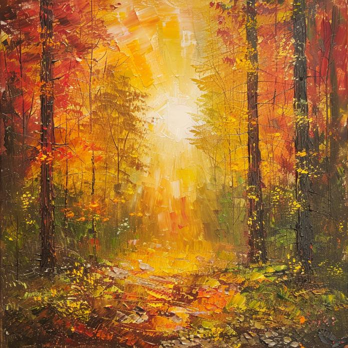 Schilderij bomen langs pad herfstkleuren