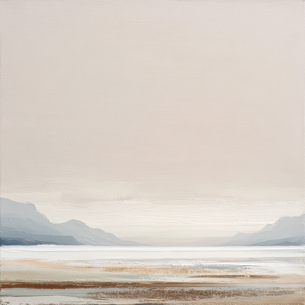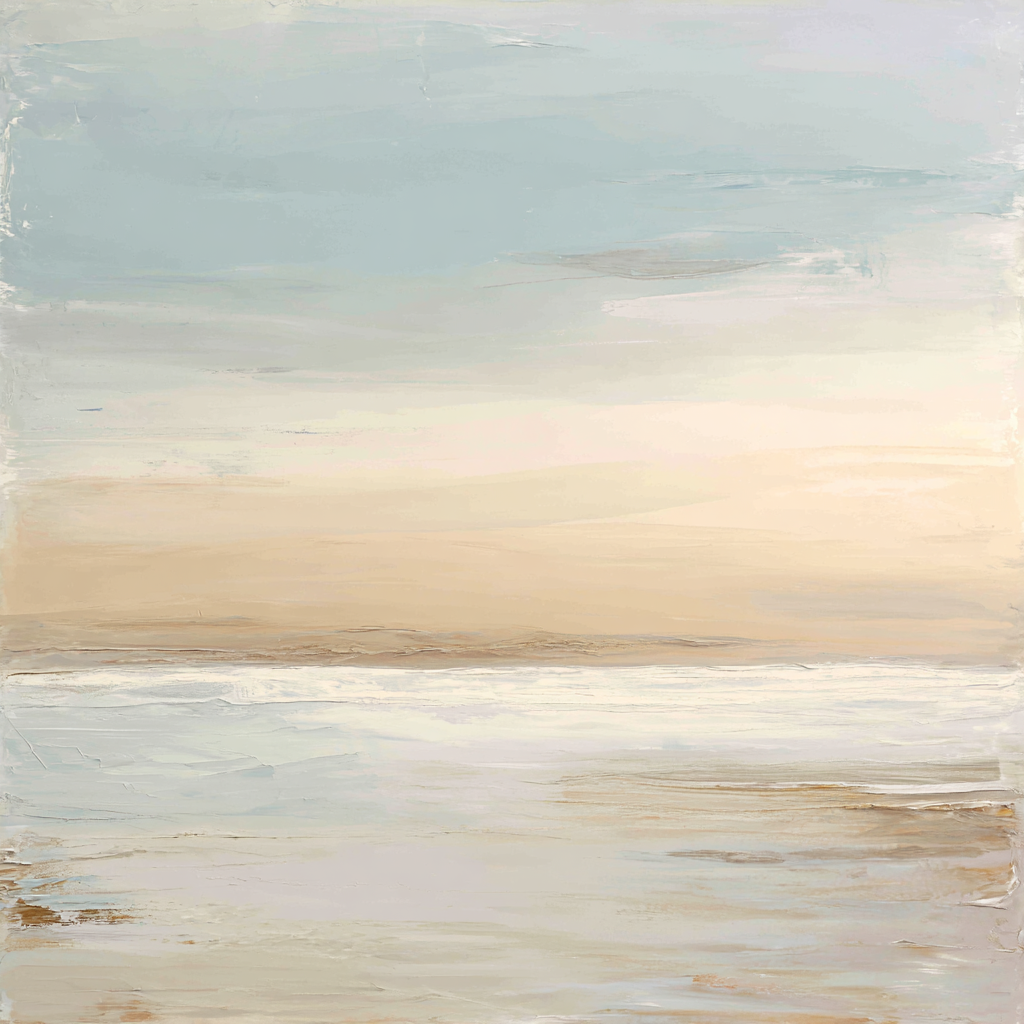 Schilderij zee met vaag bruintinten landschap horizon impressionistische stijl