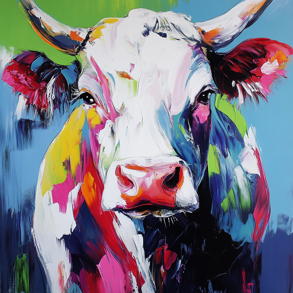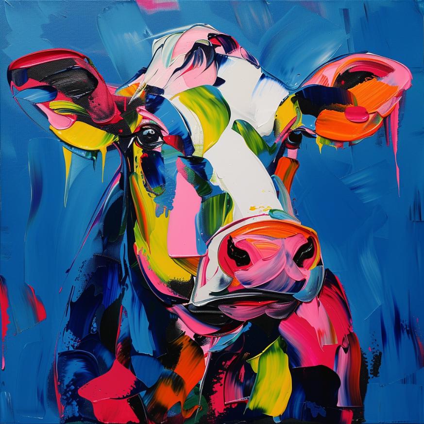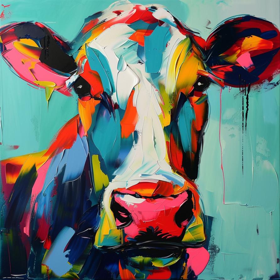 Schilderij kleurrijke koe francoise nielly stijl