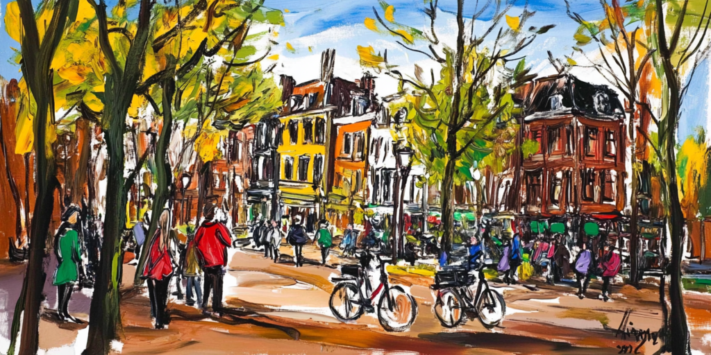 Schilderij Amsterdam bomen en fietsen levendige stijlOlieverf en acryl,Schilderijen€169,00 - €499,00Prijsklasse: €169,00 tot €499,00