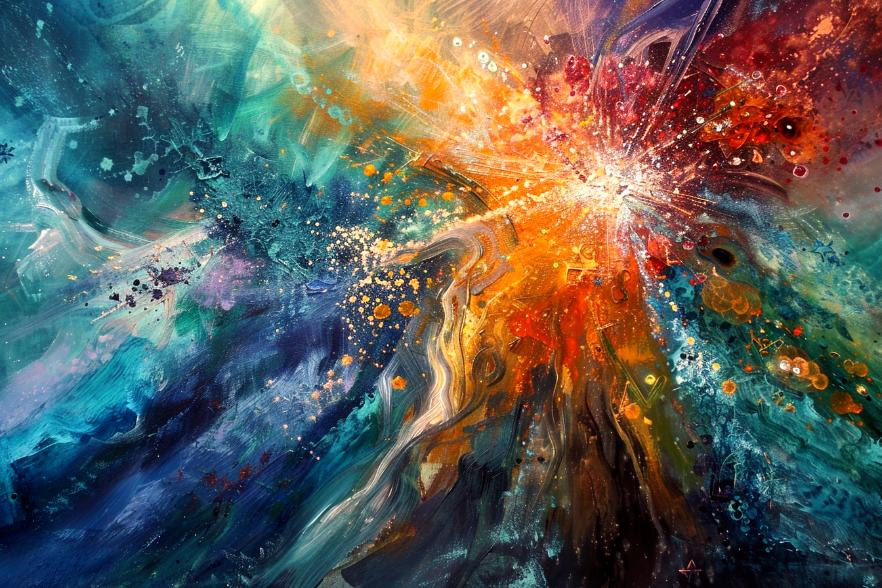 Schilderij van spetters en vlammen in de ruimteOlieverf en acryl,Schilderijen€179,00 - €499,00Prijsklasse: €179,00 tot €499,00