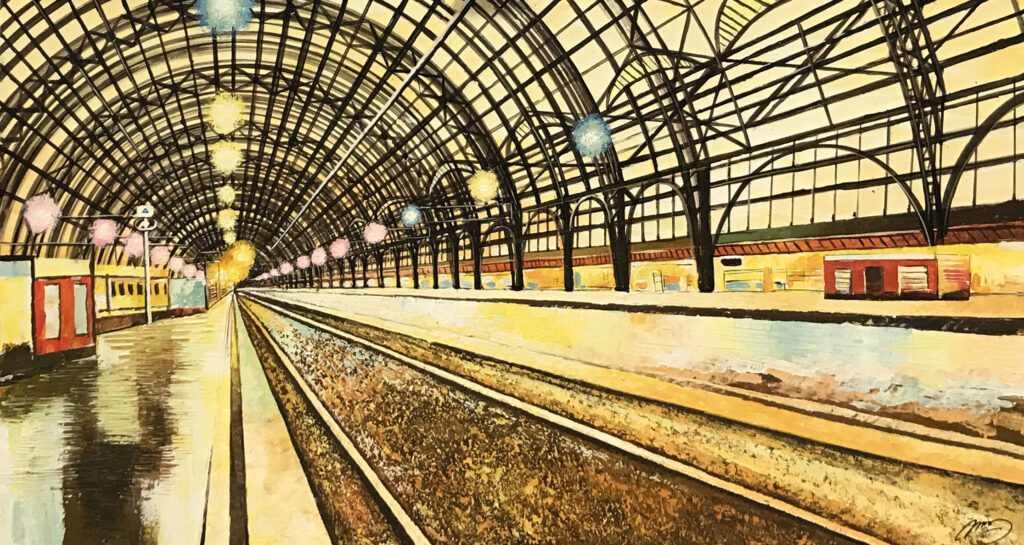 Schilderij “Treinstation railway station”